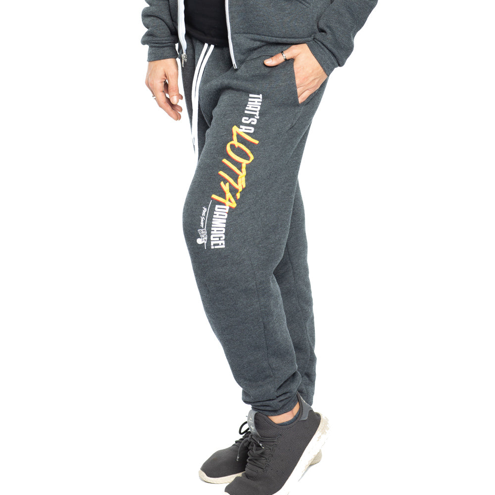 ¡Lleva tu estilo urbano al siguiente nivel con estos joggers "Lotta Damage"! Estos pantalones deportivos grises de alta calidad te mantendrán con elegancia sin importar la temperatura. Con un toque de actitud urbana, estos joggers representan mucho estilo.