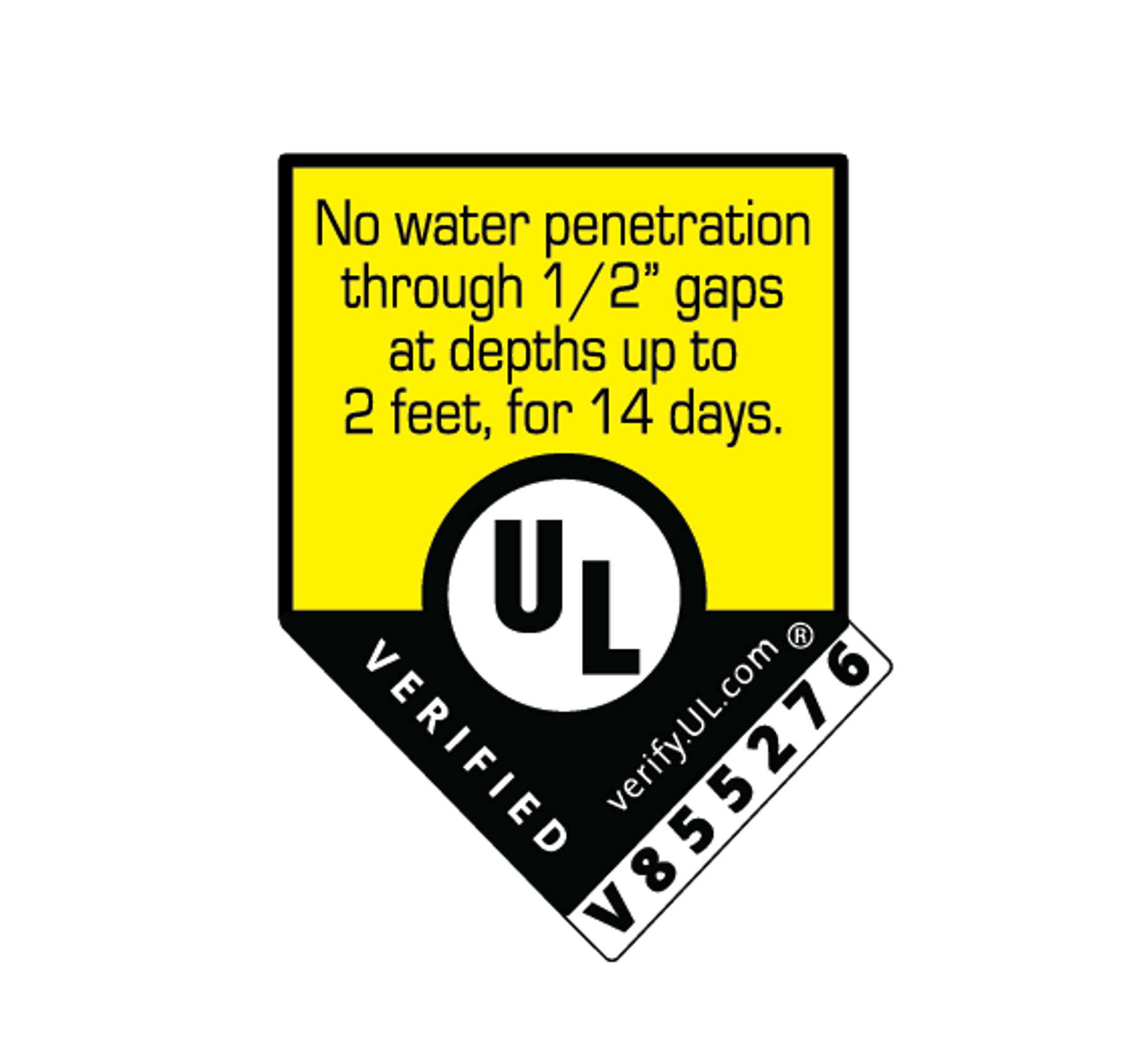 Cuando se usa según las instrucciones, UL Solutions ha verificado de forma independiente que nuestra cinta de protección contra inundaciones retiene 2 pies de agua durante 14 días en espacios de hasta ½ pulgada. Probado en entornos de laboratorio.